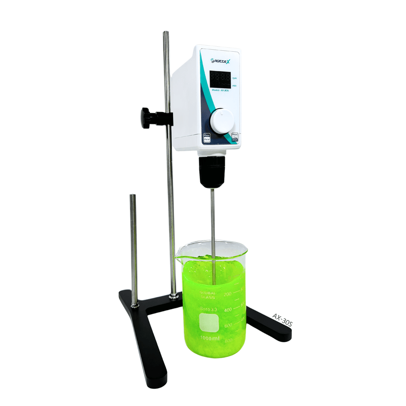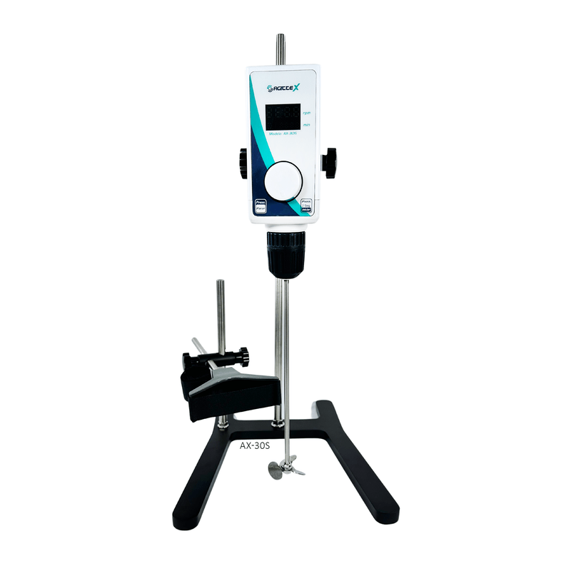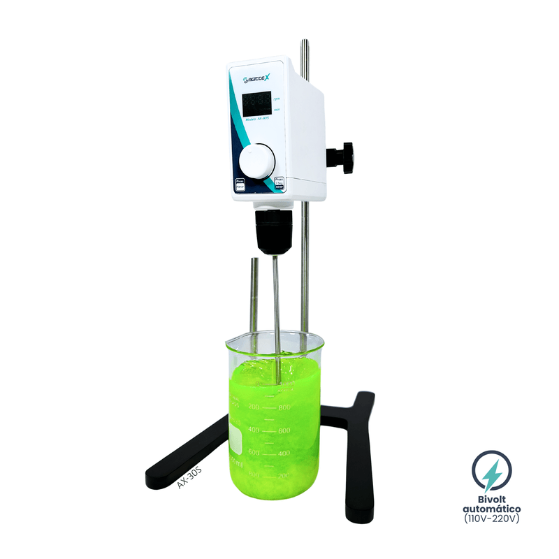 - R: O AX-30S possui um motor sem escovas de alta durabilidade, controle digital de velocidade com incrementos de 10 rpm, capacidade para misturar até 20 litros e estrutura compacta e robusta. Além disso, o equipamento inclui proteção contra sobrecarga e desligamento automático.