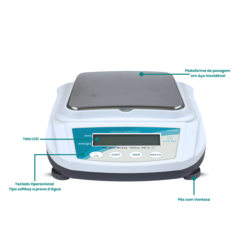 É uma balança de precisão inteligente composta por sensores de alta estabilidade, microcomputadores de chip único, com uma resolução de 0,01g (2 casas) com capacidade máxima de 2Kg / 2.000g. Equipada com célula de carga altamente integrada, com calibração externa, caracterizada por um alto nível de precisão e repetibilidade.